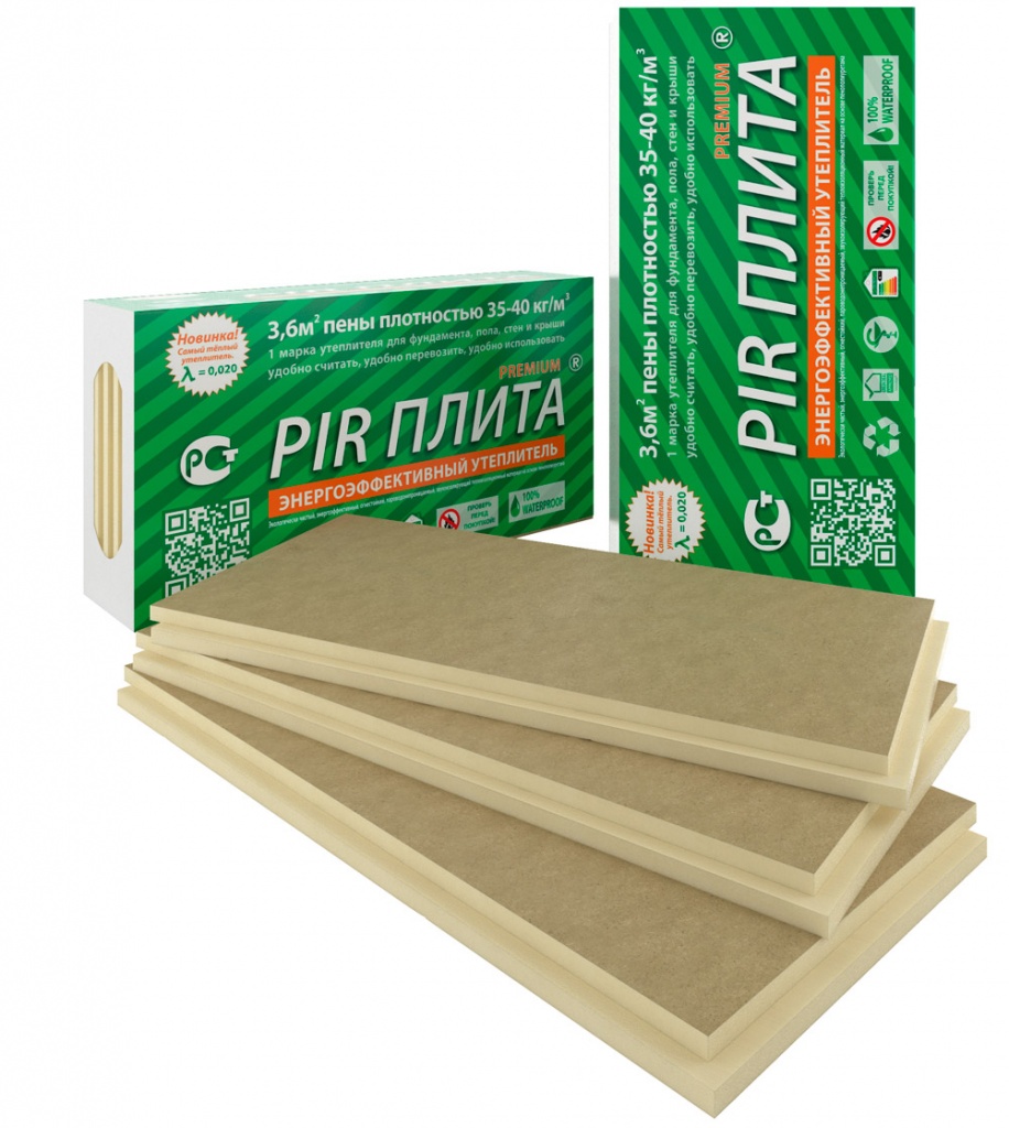 PIR или полиизоцианурат — разновидность пенополиуретана, ППУ, материал с уникальными теплоизоляционными свойствами. Коэффициент теплопроводности — 0,020 Вт/(м*К). Пенополиуретаны широко применяются в строительстве и в быту: в обуви, отделке автомобилей и домашних холодильниках.